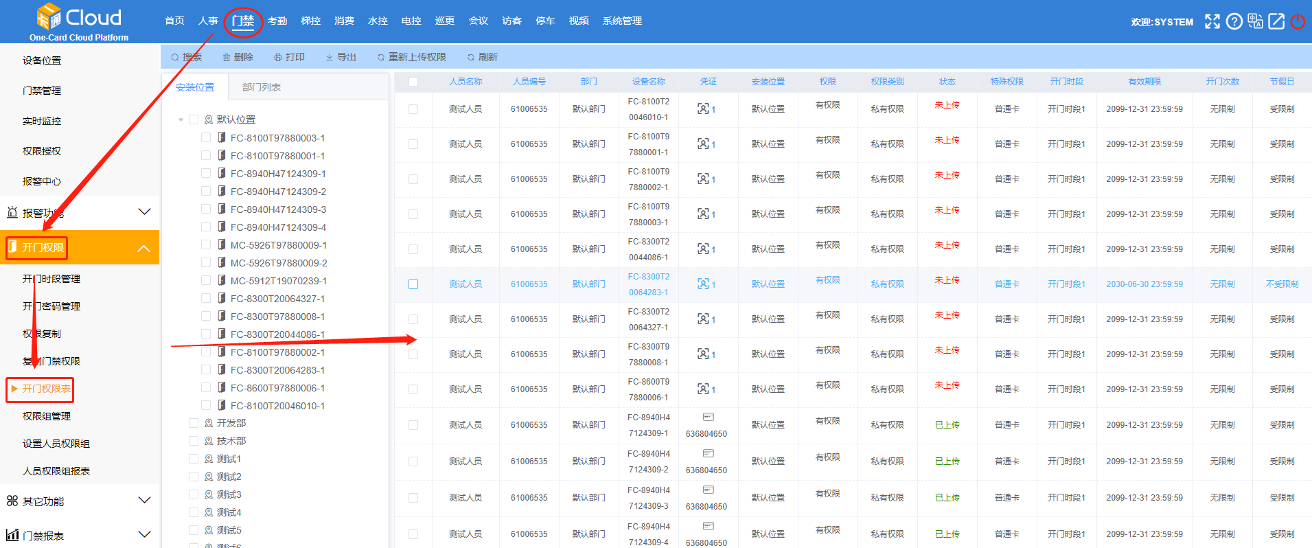 點擊【門禁】-【其它功能】-【開門權(quán)限信息】。如下圖所示: