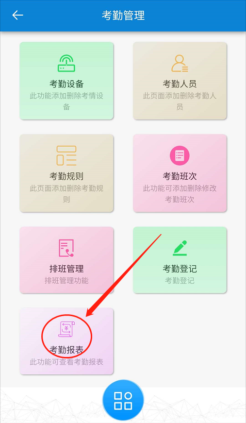 點擊【考勤】-【考勤報表】-【考勤月報表】。如下圖所示: