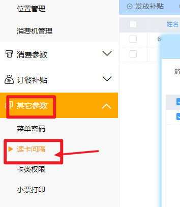 彈出讀卡間隔,勾選對應的消費機,并設置對應信息,保存確定即可
